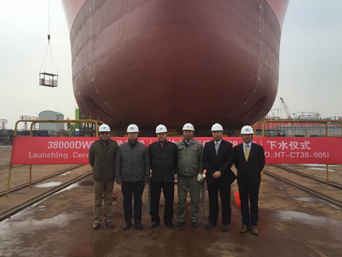 2016年11月30日,我司為船東中化船務(wù)建造的38000 DWT不銹鋼化學(xué)品船(船體號(hào):HT-CT38-005)順利下水,該船入LR 和CCS船級(jí)社。公司領(lǐng)導(dǎo)、船東、船檢代表參加該下水儀式。