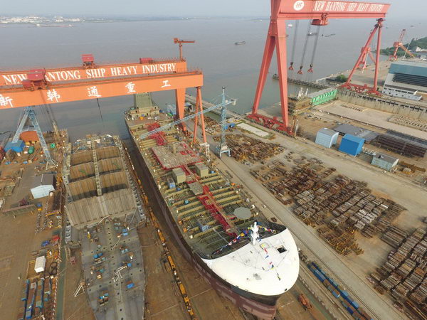 2019年8月21日上午7點(diǎn)58分,新韓通重工為德國CB船東建造的第二艘38000噸油化船(船體號:HT-CT38-010)成功下水,該船入DNVGL船級社。