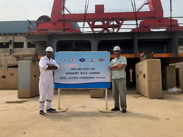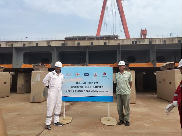 2019年8月24日,新韓通船舶重工為Nisshin船東建造的兩艘82000噸散貨船(船體號(hào):HT82-221/236)分別于10點(diǎn)18分、10點(diǎn)28分順利上臺(tái)。