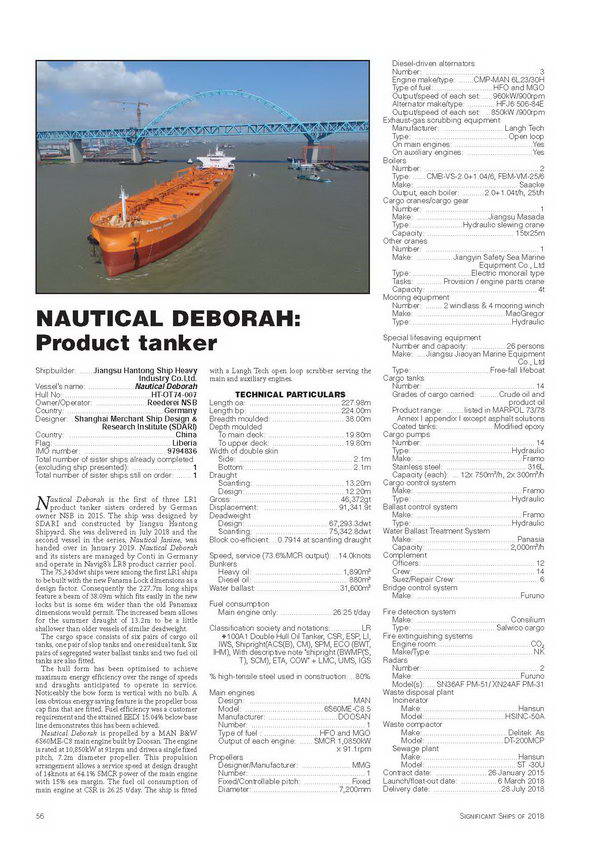 韓通為挪威客戶TRF建造的74000噸成品油輪(船體號:HT-OT74-007)及希臘客戶Cardiff建造的114000噸油輪(船體號:HT-OT115-001)入選 SIGNIFICANT SHIPS OF 2018(Published by The Royal Institution of Naval Architects)。