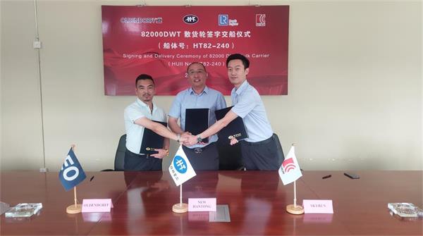 2020年7月1日,公司為德國船東Oldendorff建造的82K散貨輪 “SOUND YOUNG”(船體號:HT82-240)成功簽字交船。