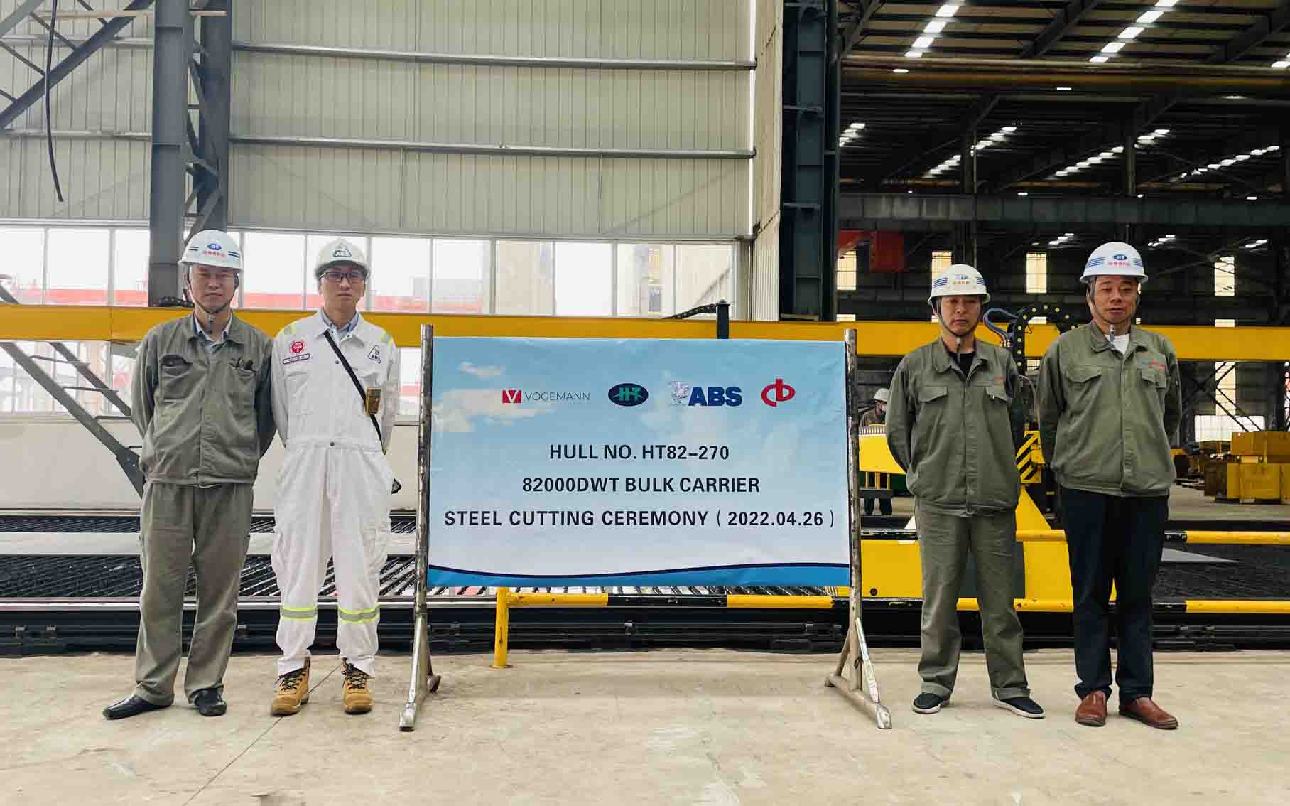2022年4月26日,韓通為H.Vogemann船東建造的82000噸散貨輪(船體號:HT82-270)順利開工,該船入ABS船級社。該船為上海船舶設(shè)計院設(shè)計,總長229.00米,型寬32.26米,型深20.05米。船舶滿足HCSR及Tier III排放要求。公司領(lǐng)導(dǎo)、船檢代表參加了上述儀式。
