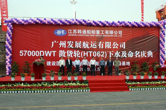 14:38,公司隆重舉行該船命名及下水儀式,船東廣州發(fā)展航運(yùn)代表、CCS船級(jí)社代表和公司領(lǐng)導(dǎo)出席儀式。