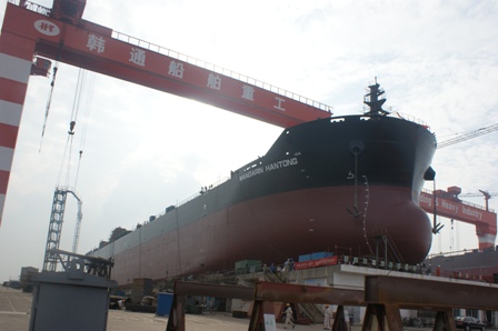 57000噸散貨輪(船體號(hào)HT066)成功下水