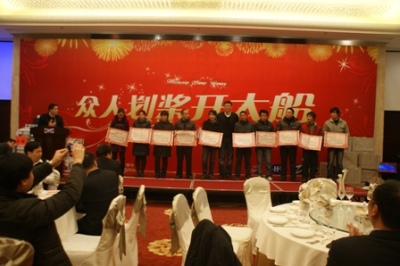 迎春晚宴現(xiàn)場(chǎng)隨機(jī)抽獎(jiǎng)讓晚會(huì)氣氛再次高漲,而特等獎(jiǎng)筆記本電腦的抽取更是將晚會(huì)的氣氛推向了最高點(diǎn)。大家歡欣鼓舞,熱情高漲,都沉浸在歡樂之中。