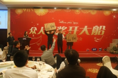 團(tuán)拜會(huì)現(xiàn)場(chǎng)分為兩個(gè)部分——表彰大會(huì)和迎春晚宴。表彰大會(huì)由陳興副總主持,分別由陳林軍常務(wù)副總等公司高層為2010年度韓通優(yōu)秀員工,韓通優(yōu)秀班組,海洋優(yōu)秀個(gè)人與班組,中冶優(yōu)秀個(gè)人與班組,文景優(yōu)秀個(gè)人,韓通優(yōu)秀外包施工班組以及韓通優(yōu)秀勞務(wù)公司頒獎(jiǎng),此時(shí)在各工作崗位上辛勤工作了一年的同事們成了彩光燈下最耀眼的明星。