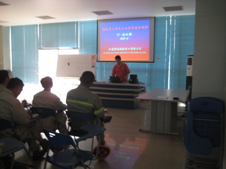 2011年6月3日下午17:30,我公司腳手管理員和腳手架承包商榮發(fā)隊現(xiàn)場帶班以上人員集中在安全培訓(xùn)室,接受了《搭架作業(yè)安全管理規(guī)定》、《鋼管腳手架搭設(shè)標(biāo)準(zhǔn)》的培訓(xùn)。此次培訓(xùn)是第三屆安全月活動首次針對現(xiàn)場專業(yè)安全技術(shù)的培訓(xùn),由安環(huán)部講師馬陳鍵以PPT形式講解。通報了近期腳手架搭設(shè)的問題,重點講解了船舶腳手架的選材標(biāo)準(zhǔn)、搭設(shè)規(guī)范及三級報檢制度。各級管理人員的職責(zé)及腳手架過程跟蹤維護等內(nèi)容。目的在于糾正我公司腳手架搭設(shè)上的問題,強化了腳手作業(yè)人員的安全意識,提高了腳手作業(yè)人員的安全知識。