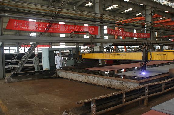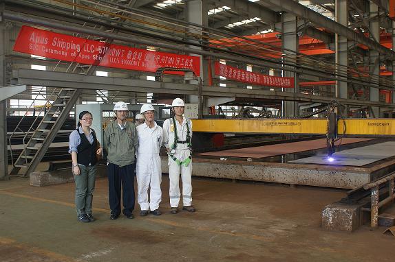 2011年9月5日,我司為Eagle Bulk 船東建造的57000噸散貨輪(船體號(hào):HT106)開(kāi)工儀式在韓通新船體車(chē)間順利舉行,該船入LR船級(jí)社。潘學(xué)軍副總及船東、船級(jí)社代表參加了該儀式。
