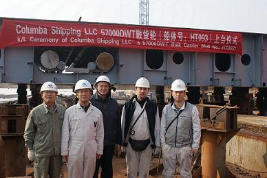 我司為Eagle Bulk船東建造的57000DWT散貨輪(船體號:HT093)于2011年12月14日上午10:00在我司3號船臺舉行了上臺儀式,該船入LR船級社。李繼念副總及船東船檢代表參加了該儀式。