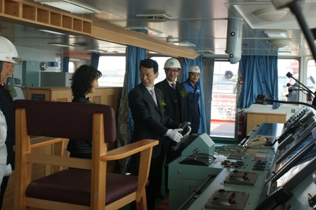 2012年3月20日江蘇韓通船舶重工有限公司迎來了又一個值得慶祝和紀念的日子—HT57-108命名及交船儀式。該57000DWT散貨輪為我司為HHI船東建造并交付的第一條散貨輪,該船被命名為“SUN LUCIA”, 入KR船級社。韓通重工董事長孟成君、船東、船檢及代理公司代表參加了該儀式并發(fā)表講話。儀式結束后,船東船檢代表等參觀了該船,并給予很高的評價。