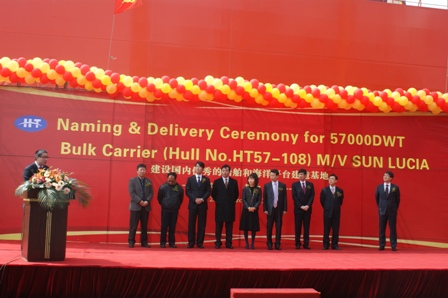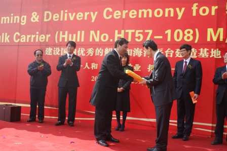 57000噸散貨輪(船體號:HT57-108)成功命名及交船