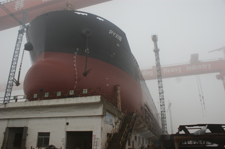 2012年12月15日,我司為Eagle建造的57000DWT散貨輪(HT099)在韓通1號(hào)船臺(tái)順利下水,該船入LR船級(jí)社。鄭錫山副總,船東代表及船級(jí)社代表參加該儀式。