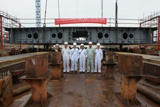我司為 SPAR 船東建造的64000DWT散貨輪(船體號:HT64-158)于2014年7月14日在我司2號船臺舉行了上臺儀式,該船入DNV.GL船級社。周義慶副總經(jīng)理及船東、船檢參加該儀式。