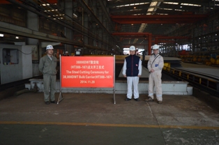 2014年11月28日,我司為德國(guó)PD船東建造的38800噸散貨輪(船體號(hào):HT388-167)開工儀式在韓通新船體車間順利舉行,該船入LR船級(jí)社。董繼紅總經(jīng)理助理及船東、船檢代表參加該儀式。