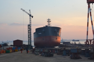 2015年2月8日,我司為德國(guó)PD船東建造的38800噸散貨輪(HT388-133)在韓通2號(hào)船臺(tái)成功下水,該船入LR船級(jí)社。公司領(lǐng)導(dǎo)、船東代表及船級(jí)社代表參加該儀式。