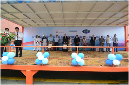 2015年8月13日江蘇韓通船舶重工有限公司對(duì)HT64-132舉行了命名儀式。該船被命名為“SOUTHERNLIGHT”, 入DNV.GL船級(jí)社。公司領(lǐng)導(dǎo)、船東、船檢代表參加了該儀式。儀式結(jié)束后,船東船檢代表等參觀了該船,并給予很高的評(píng)價(jià)。