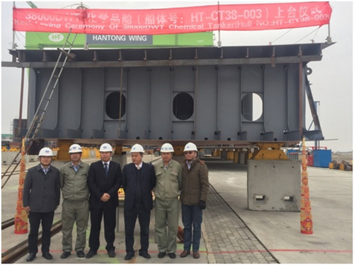 2015年12月9日,韓通為中化船務(wù)有限責(zé)任公司建造的38000噸不銹鋼化學(xué)品運(yùn)輸船(船體號(hào):HT-CT38-003)上臺(tái)儀式順利舉行,該船入LR 和CCS船級(jí)社。公司領(lǐng)導(dǎo)、船東、船級(jí)社代表參加該儀式。