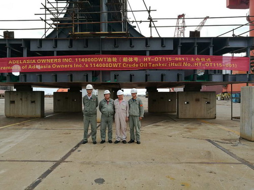 2016年10月10日,我司為TMS TANKERS公司建造的115000噸油輪(船體號:HT-OT115-001)舉行上臺儀式,該船入ABS船級社。公司領(lǐng)導(dǎo)、船東代表參加該儀式。